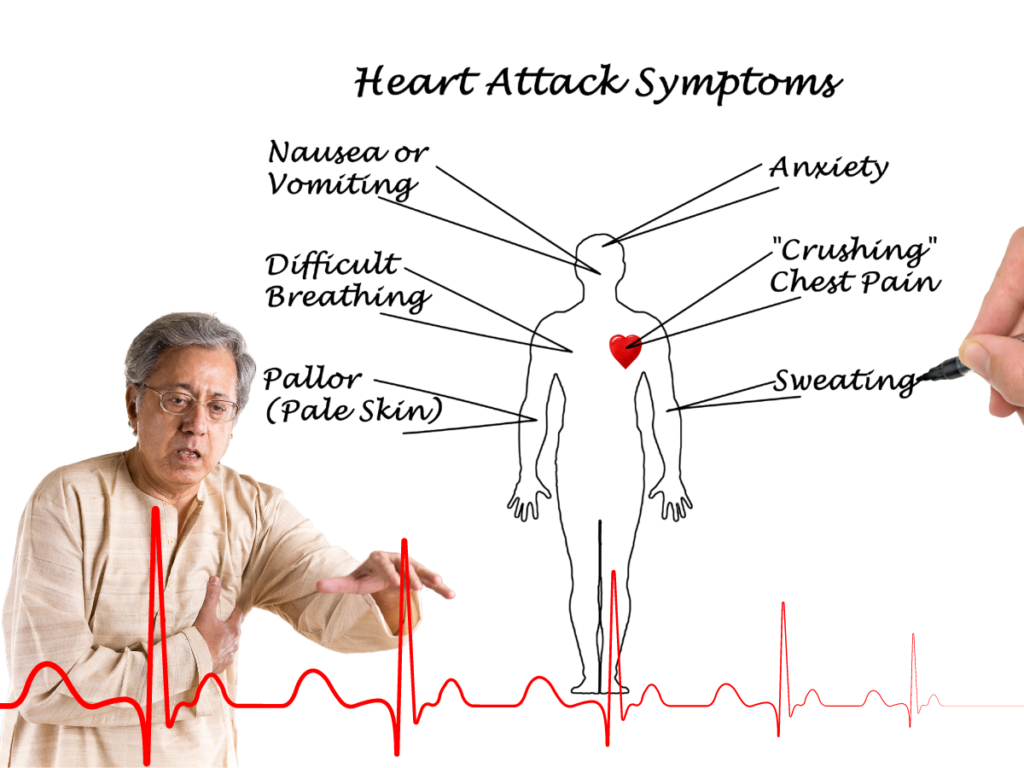 कोणतीही कारवाई करण्यापूर्वी, हृदयविकाराच्या झटक्याची चिन्हे ओळखणे महत्वाचे आहे. सामान्य लक्षणांमध्ये हे समाविष्ट आहे: